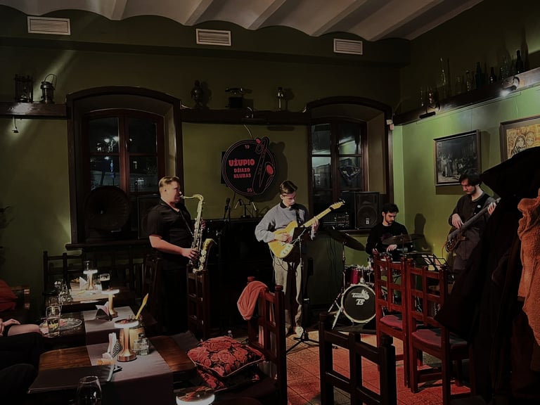 Užupis Jazz Club is a live music venue in Vilnius, located in the artists' favorite café “Užupis Kavinė”, on the banks of the Vilnelė River. Situated next to the Užupis Angel monument, it is easily accessible and popular with visitors of the Užupis Republic. The club operates in a historic building built in the 19th–20th centuries, which belongs to the Old Town District.